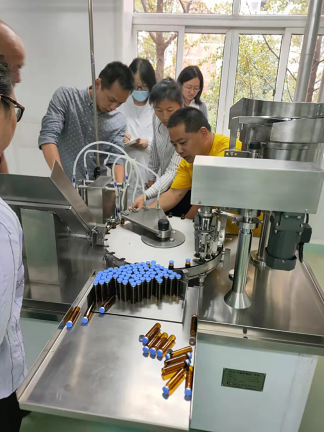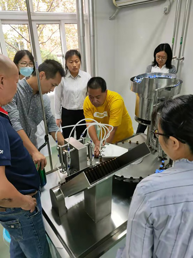 2021年10月13日,我廠派遣技術(shù)人員前往浙江醫(yī)藥高等專科學(xué)校對購置的CXP型超聲波洗瓶機、DGZ4口服液灌軋一體機進行安裝調(diào)試,并就設(shè)備的使用對學(xué)院老師進行了培訓(xùn)。
