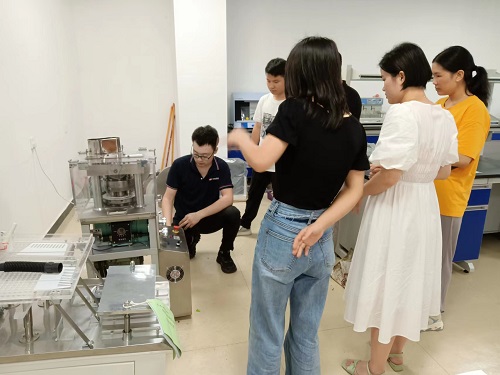 2022年6月22日,我廠銷售部李經理及技術人員王工前往貴州健康職業學院對購置的旋轉式壓片機、單沖壓片機進行安裝調試,并就設備的使用對學院老師進行培訓。