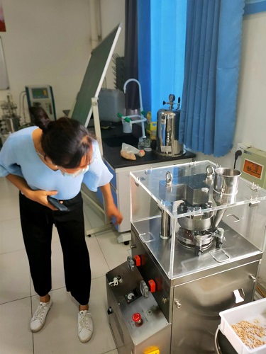 2022年6月22日,技術人員周工前往山東省濰坊職業學院對購置的4臺旋轉式壓片機進行安裝調試,并就設備的使用對學院老師進行了培訓。