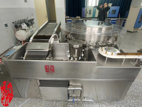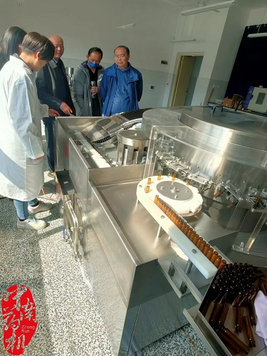 2022年3月,我廠技術工程師前往貴州銅仁職業技術學院對購置的ZNHX-300型回轉式超聲波洗瓶機、LBG-1.5型多功能流化床制粒包衣機、DGZ4型口服液灌軋一體機、GHL-50L型高效濕法制粒機等6臺設備進行安裝調試,并就設備的使用對學院老師進行培訓。