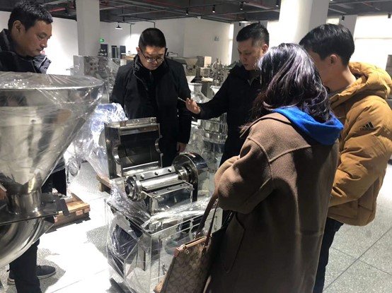 1月17日,湖南省中醫研究院一行來我廠參觀交流,公司總經理何靖之、銷售部經理陳杰全程陪同。期間,在設備展廳進行了參觀,并對粉碎系列設備的工藝和使用提出了寶貴的意見,隨后雙方就設備配置、使用等方面進行了探討。