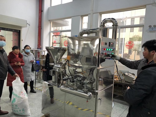 2月16日,益陽市中醫醫院一行來我廠參觀交流,總經理何靖之、銷售部經理陳杰全程陪同。期間,在生產區用刀片式粉碎機對其帶過來的物料進行了粉碎試機,并對粉碎系列設備的工藝和使用提出了寶貴的意見,隨后在展區雙方就設備配置、使用等方面進行了探討。